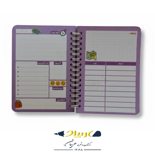 • ابعاد هر صفحه: قطع A6 – قابل حمل در کیف یا جیب