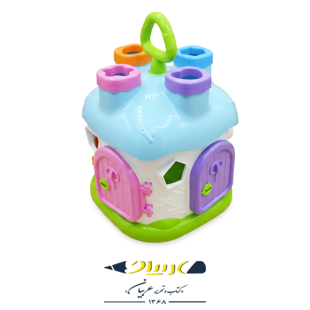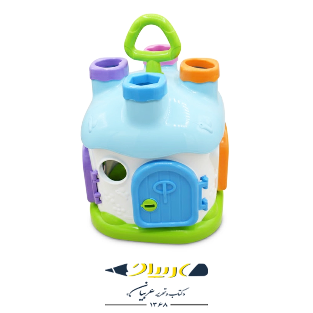 تعداد قطعات: شامل بدنه اصلی کلبه و مجموعهای از بلوکهای رنگی هندسی.