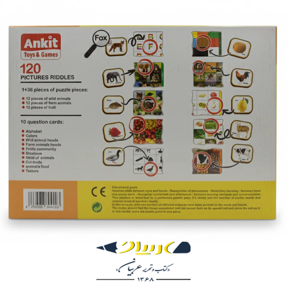 پازل آموزشی ۱۲۰ تصویر (مدل حیوانات و میوه‌ها) – برند انکیت (Ankit) 🧩🍎