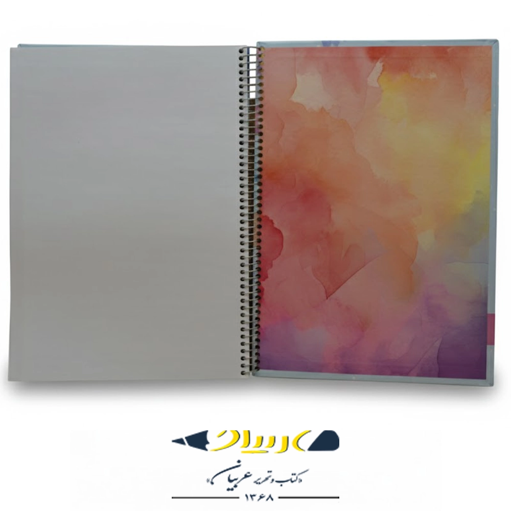 صحافی تک فنر (سیمی) 🌀: صحافی سیمی امکان باز شدن کامل دفتر (۱۸۰ درجه) و همچنین برگرداندن کامل صفحات (۳۶۰ درجه) را فراهم میسازد که برای نوشتن در هر زاویهای مناسب است.