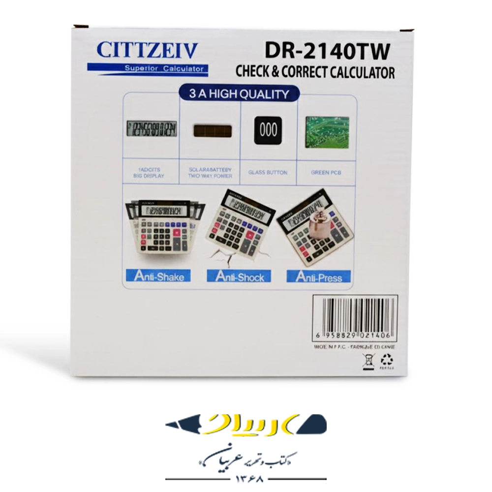 ماشینحساب مدل DR-2140TW یک نسخه بازطراحی شده با الهام از مدلهای کلاسیک و قدرتمند سیتیزن است. این ماشینحساب به دلیل ابعاد بزرگ و بدنه مقاوم، به "ماشینحساب فروشگاهی" معروف است. ویژگی کلیدی این مدل که آن را از سایر رقبا متمایز میکند، وجود چراغ تستر اسکناس (UV) در قسمت بالایی آن است که ابزاری حیاتی برای فروشندگان جهت تشخیص اصالت پول و چکپول در لحظه معامله محسوب میشود.