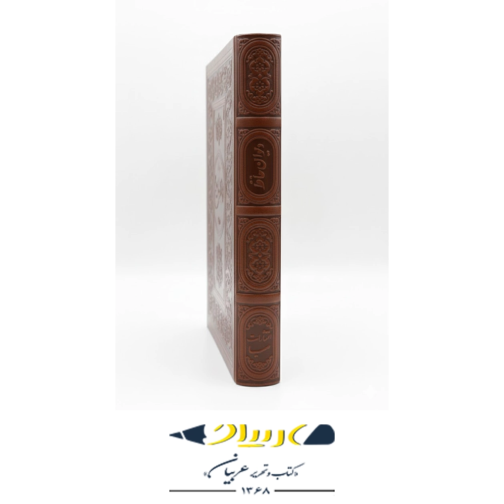 دیوان حافظ با جلد چرمی برجسته و جزئیات حاشیهای، نسخهای است که ظرافت و پیچیدگی را در عین حفظ یکپارچگی جلد چرمی به نمایش میگذارد. جلد این نسخه برجسته (Embossed) است و در کنارههای جلد یا در حاشیه عنوان، با حکاکیها و خطوط برجسته ظریف تزئین شده است. این جزئیات هنری کوچک و برجسته، جلوهای رسمیتر به کتاب بخشیده و آن را از نسخه کاملاً ساده متمایز میکند.