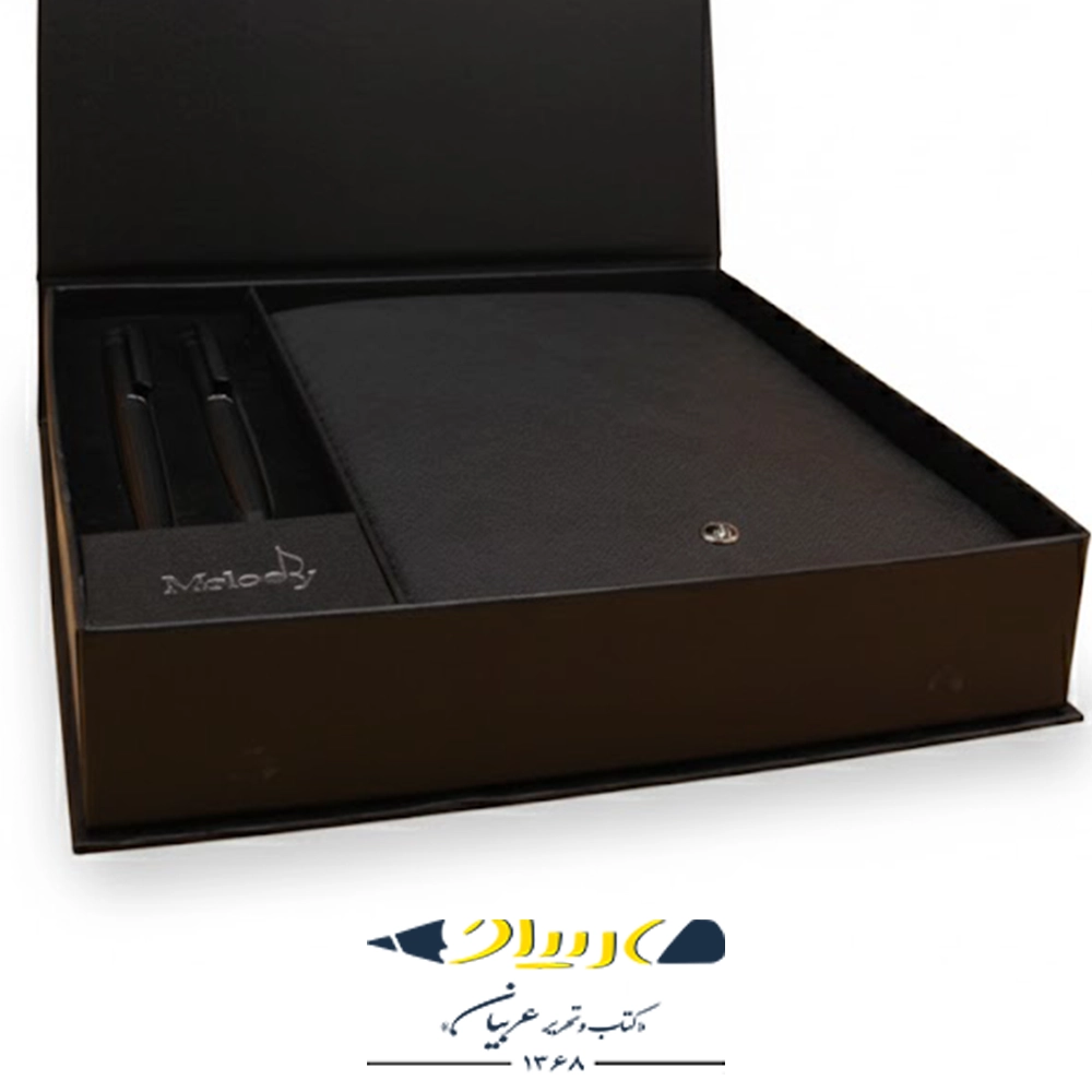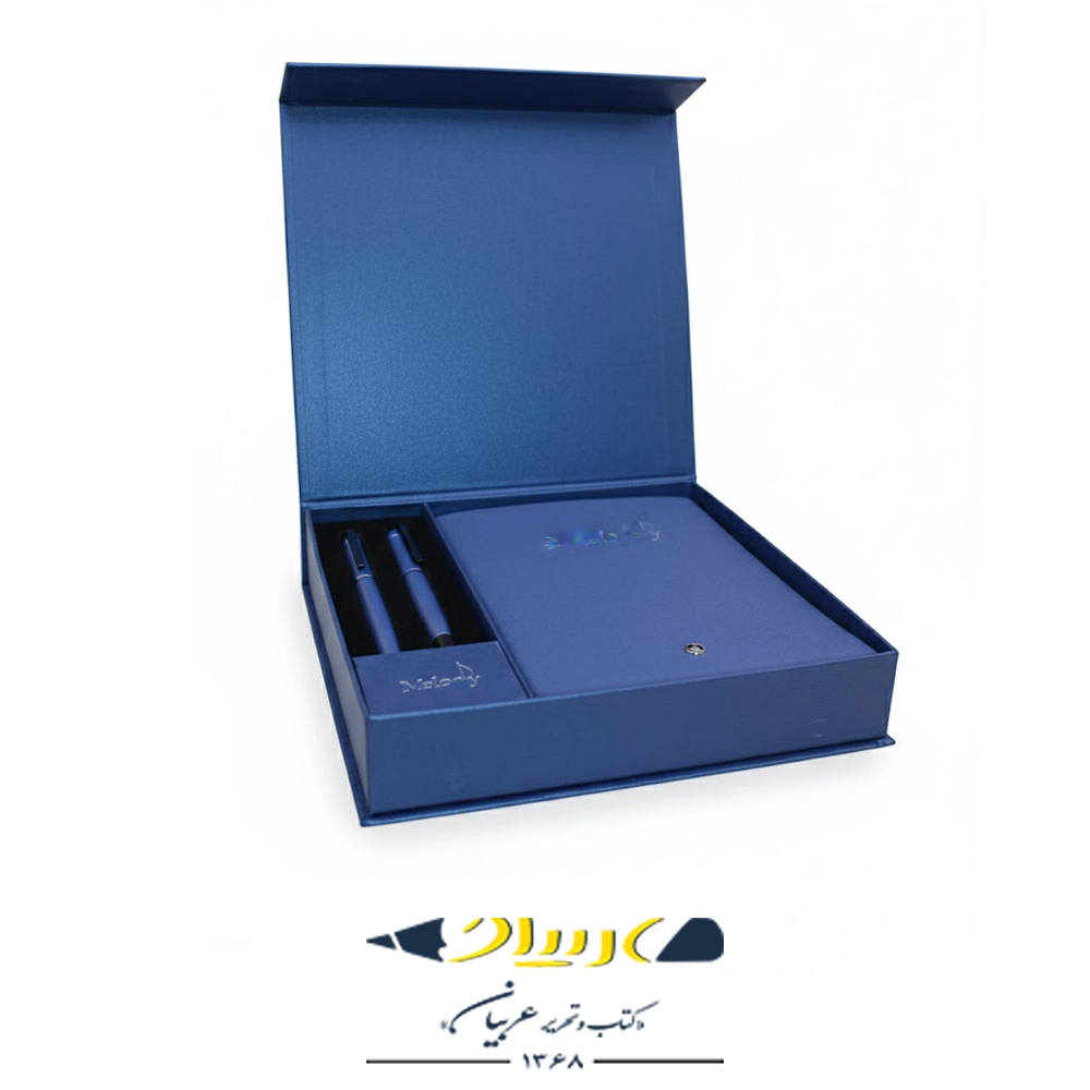 ست ملودی (Melody) مدل ۶۹ یک مجموعه هدیه کامل و فاخر است که برای ارائه یک تجربهی کامل نوشتاری طراحی شده است. این ست سهتایی شامل: یک دفتر یادداشت/پلنر (Notebook)، یک خودکار (Ballpoint) و یک خودنویس (Fountain Pen) میباشد.