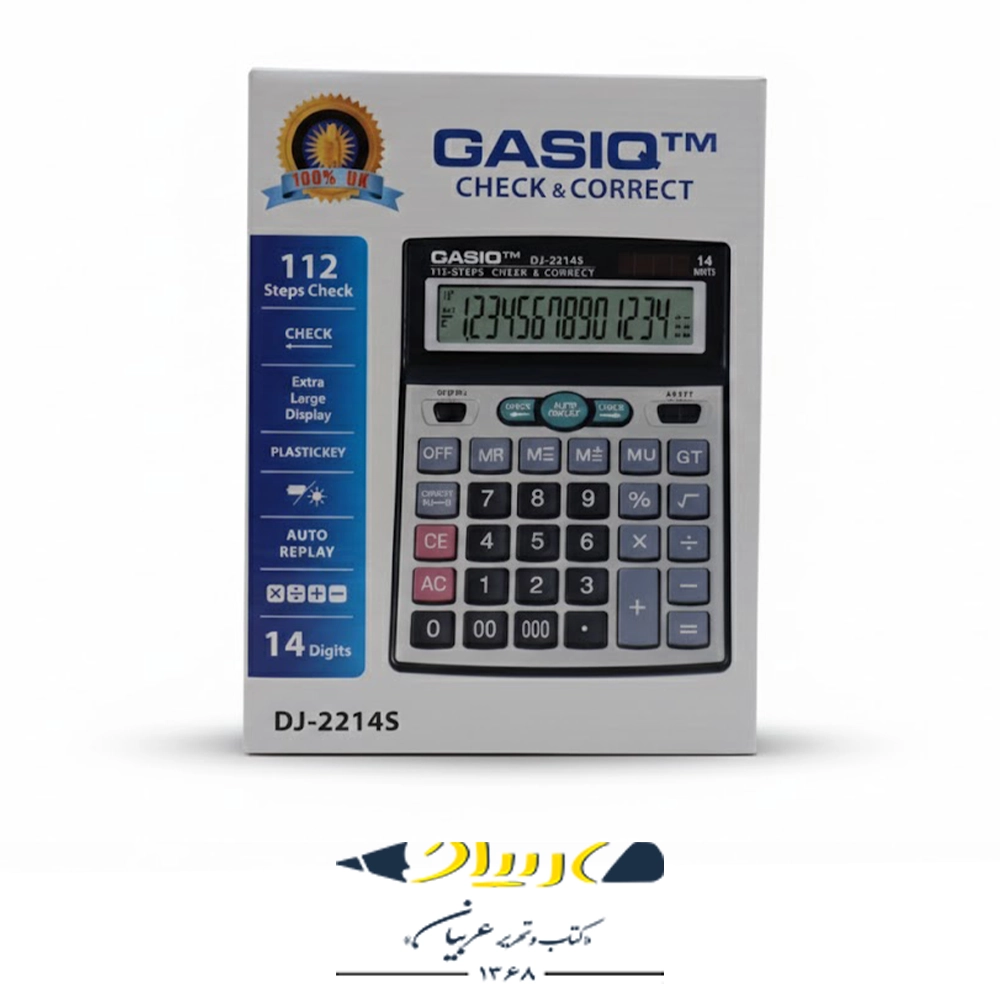 برند: (طرح برند مشخص نیست، با مدل جایگزین شده) DJ-2214S مدل: DJ-2214S ابعاد: ۲۱ × ۱۶ × ۵ سانتیمتر وزن: ۲۷۵ گرم تعداد ارقام نمایشگر: (معمولاً ۱۲ یا ۱۴ رقم در این ابعاد) منبع تغذیه: دوگانه (Two Way Power)