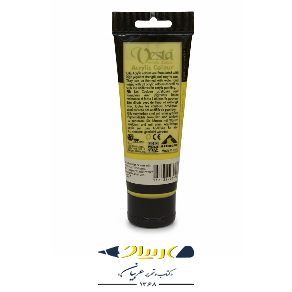 رنگ اکرولیک وستا (Vesta) کد ۷ با نام اختصاصی Cadmium Lemon Hue (زرد لیمویی کادمیوم)، روشنترین و درخشانترین طیف زرد در پالت وستا است. این رنگ با کیفیت هنری عالی (Fine Artist Quality) تولید شده و به دلیل شفافیت و تندی خاص خود، برای ایجاد هایلایتها و نقاط پرنور در نقاشی بینظیر است. تیوپهای ۷۵ میلیلیتری وستا با طراحی کاربردی، انتخابی ایدهآل برای هنرمندانی است که به دنبال غلظت پیگمنت بالا و کیفیت استاندارد هستند.